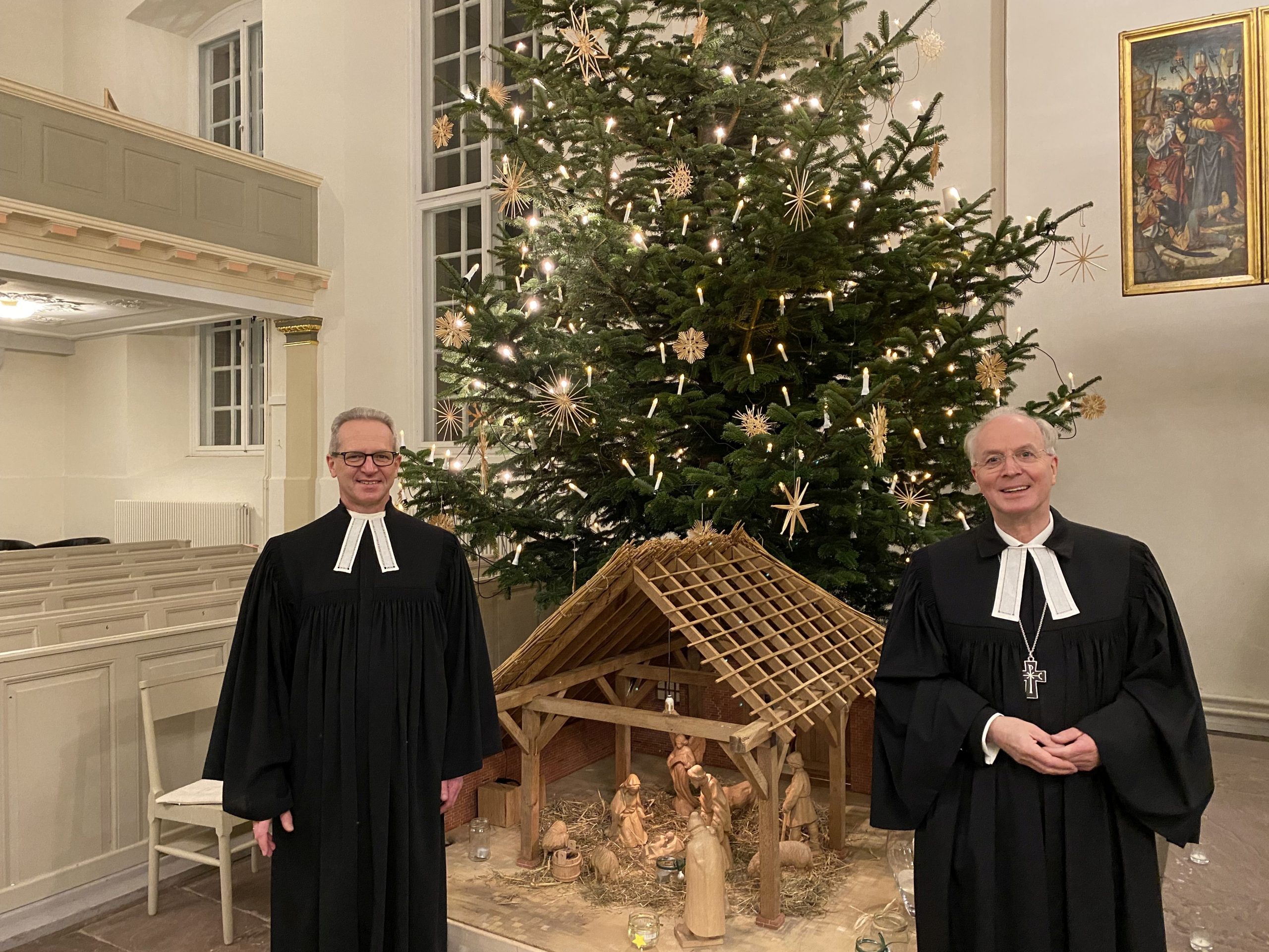 Regionalbischof Dr. Detlef Klahr (rechts) hielt gemeinsam mit Superintendent Tido Janssen den Kantaten-Gottesdienst am 2.Weihnachtstag in der Lamberti-Kirche Aurich.